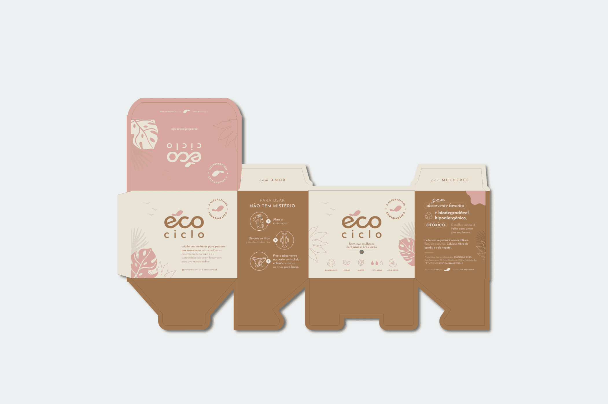 Packaging design project for an eco-friendly tampon brand created by women called EcoCiclo, centered on sustainability, empowerment, and care. The visual identity blends natural elements with bold, culturally conscious aesthetics, reflecting both environmental responsibility and the strength of its founders. Thoughtfully designed to minimize waste and maximize shelf impact, the packaging communicates trust, inclusivity, and innovation—positioning EcoCiclo as a modern, conscious choice in feminine care.