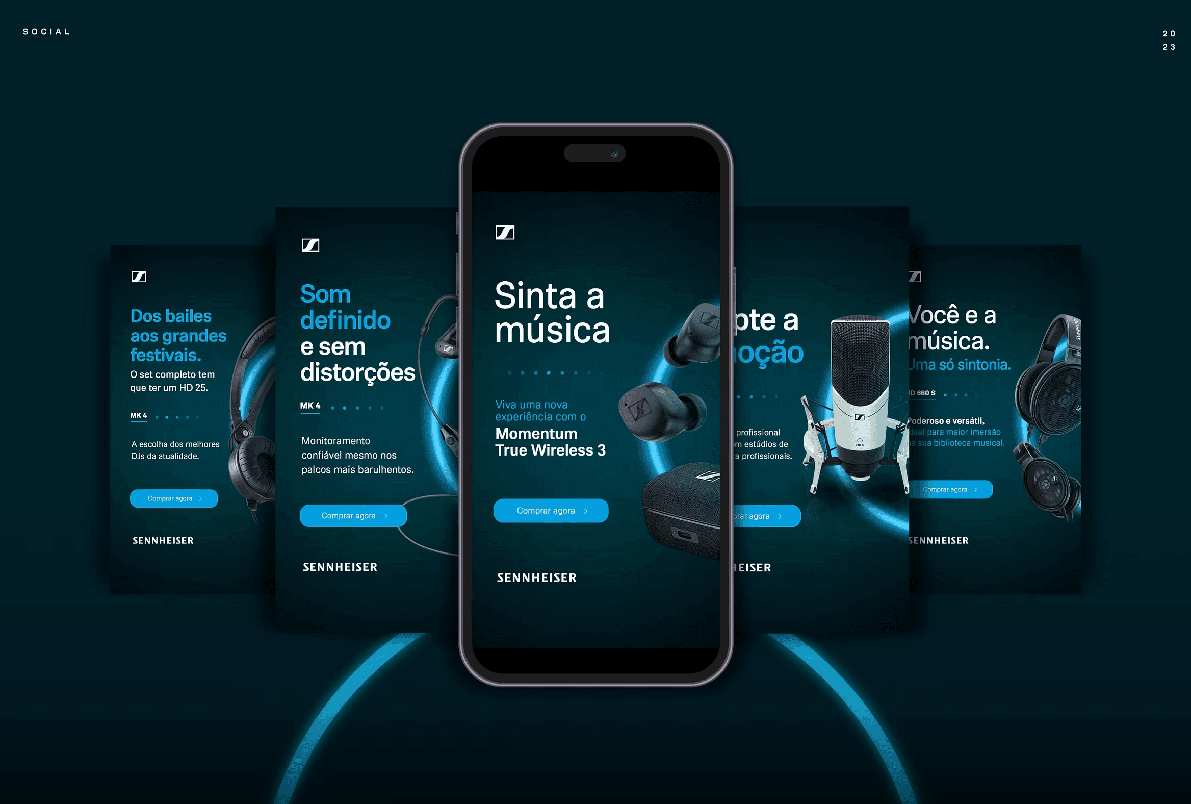 Casa do Carnaval by Sennheiser is a campaign that happens during the carnaval, Brazil's most famous festival. So, for the development of the graphic elements was to bring a part of the festival itself, what is most vivid and experienced.