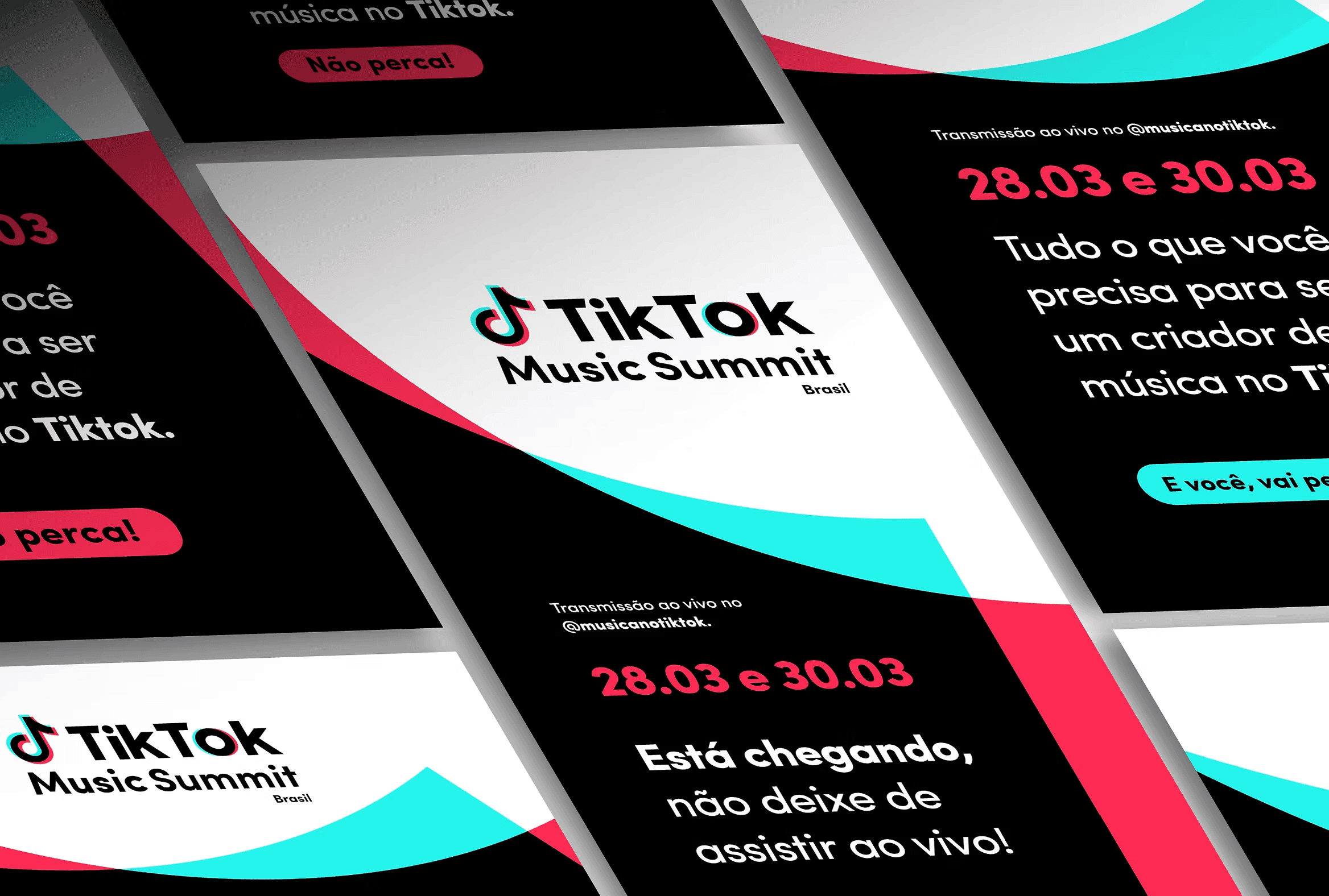 Pieces created for the last TikTok Music Summit Brasil, which happened in march. Participated in the development of few pieces for the advertising fase and also for the event.